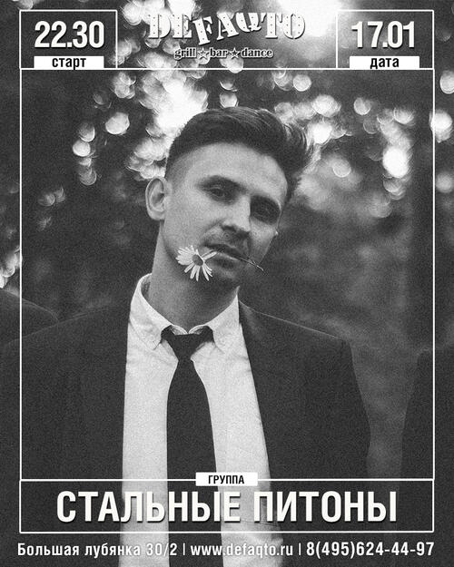 Группа образовалась в январе прошлого года как кружок по интересам. Мы просто приходили на репетиции и играли что хотели (делали кавера на то что нам нравится). Ребята, которые видели и нас слышали со стороны во время репетиций предложили сделать пробное выступление, т.к. то что мы играли их дико вставило! В итоге мы образовали бэнд и назвали его steel pythons в основном, из-за любви нашего басиста к виагре. По сей день существуем, играем и устраиваем дикие тусы!»