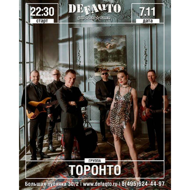 Группа «Toronto» существует с 2003 года, и заслуженно является одной из лучших кавер-групп Москвы так как способна своим искусством покорить самого искушенного зрителя и слушателя, и заставить танцевать и подпевать любого, у кого есть ноги и уши.