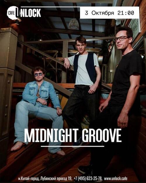 Группа «Midnight Groove», состоящая из трех опытных музыкантов, представляет собой свежий взгляд на классический рок, блюз и рок-н-ролл. За плечами каждого участника-годы выступлений и бесконечная страсть к музыке. Они выступали на таких площадках, как Jam club, The Hat, Papa blues. В репертуаре группы- как известные классические хиты, так и редкие композиции, которые приятно удивят даже искушенных слушателей. Они играют музыку, которая заставляет сердца биться быстрее. Репертуар группы — это микс из любимых хитов, вдохновлявших участников годами и их собственных идей. Их энергия и профессионализм создают атмосферу, которая объединяет людей разных поколений.
