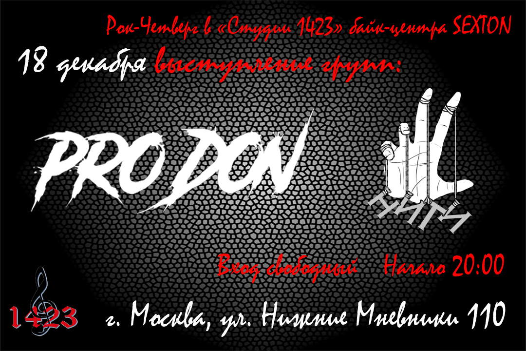 На концертной площадке «Студия 1423» мотоклуба «Ночные Волки» выступят группы «Нити» и «Prodon»