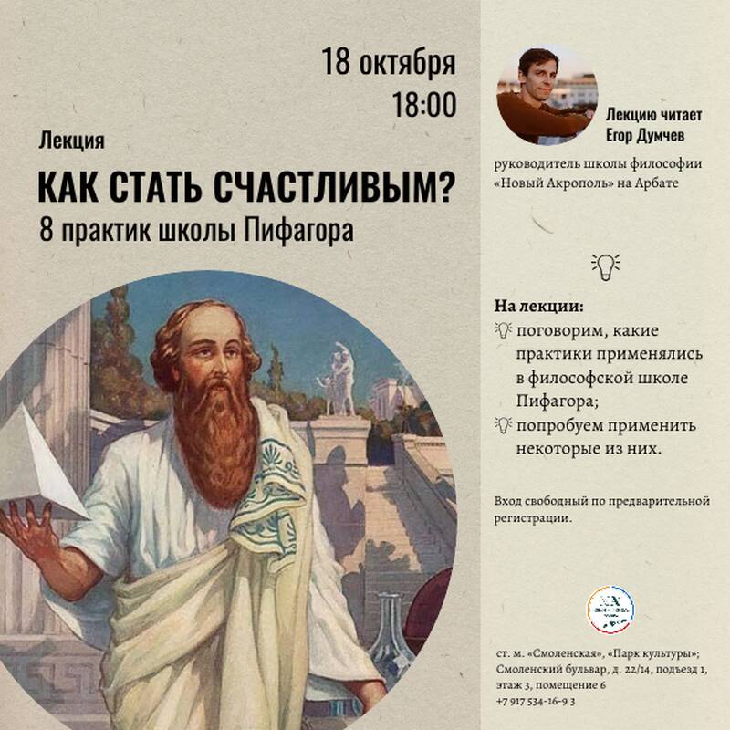 Лекция «Как быть счастливым? 8 практик школы Пифагора»