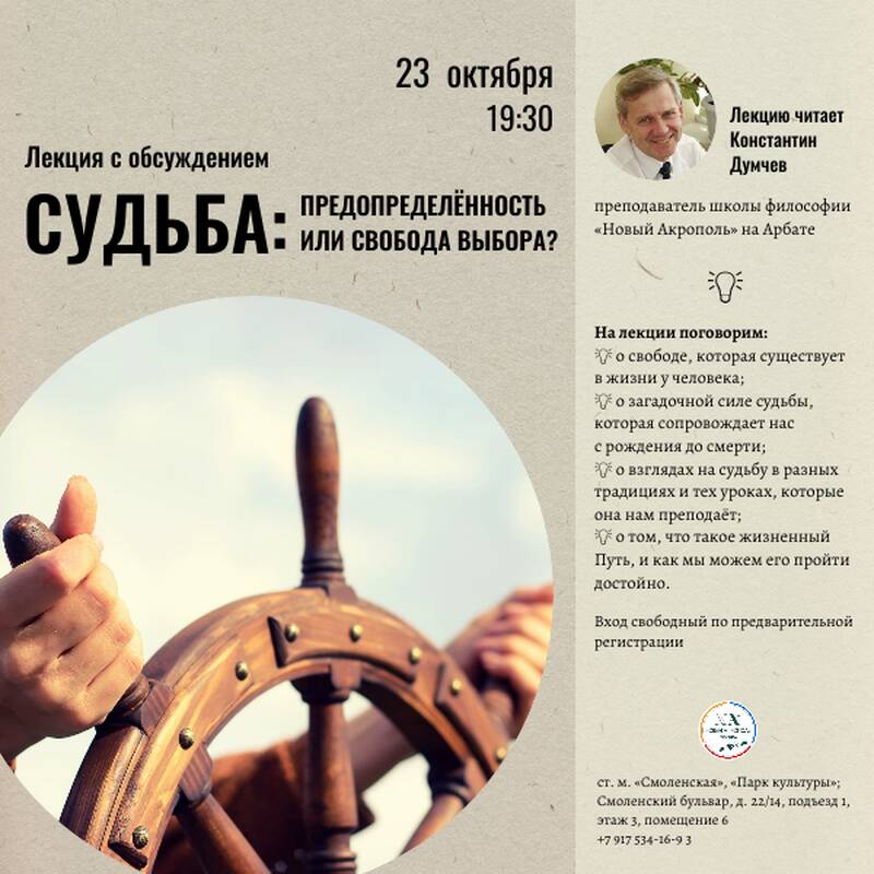 Лекция с обсуждением «Судьба: предопределённость или свобода выбора?»