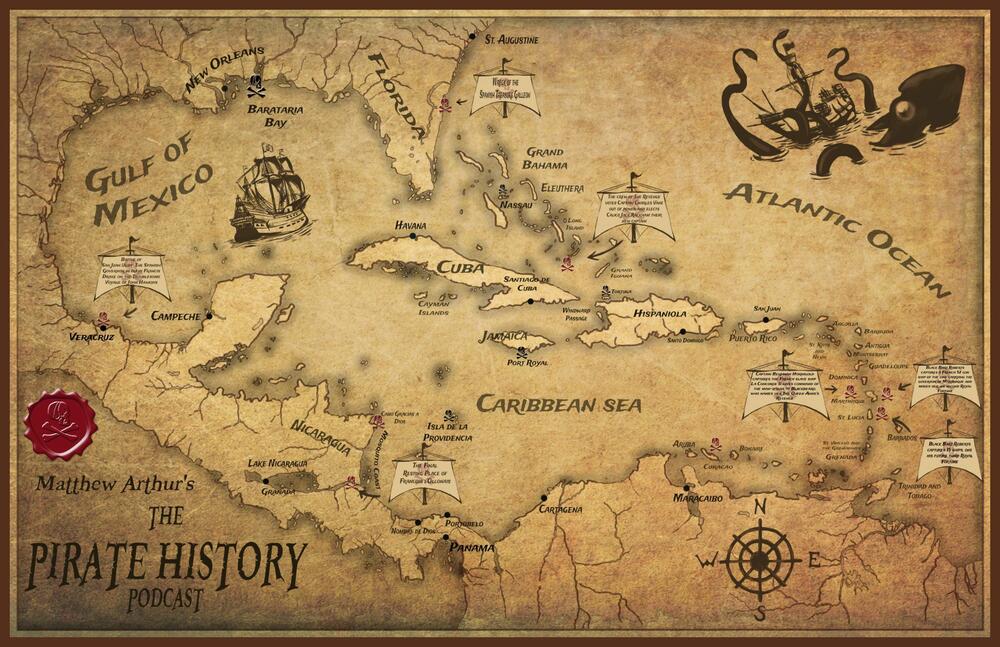Иллюстрации: Карта истории пиратов. Пираты Карибского моря.