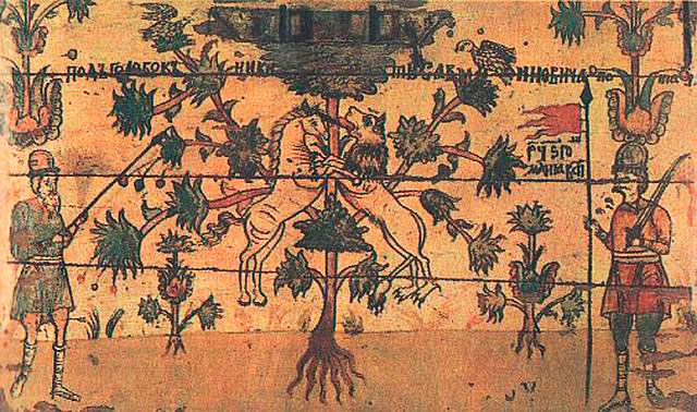 Иллюстрация: Древо жизни с символами династии Романовых (львом и единорогом).