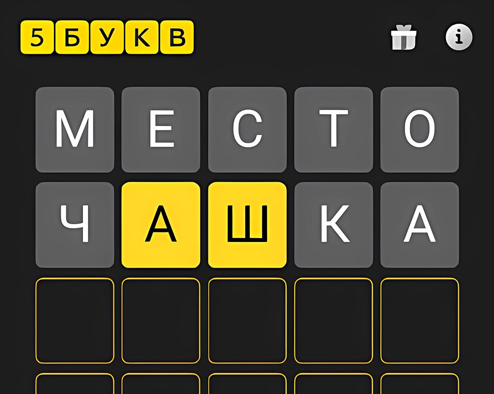 Те буквы, что есть в слове и совпали с расположением в нем, показываются в клетках и отмечаются желтым цветом. Если же предложенные нами буквы угаданы, но в загаданном слове находятся в других местах — они выделяются серым. В итоге, все слово должно быть написано желтым цветом.