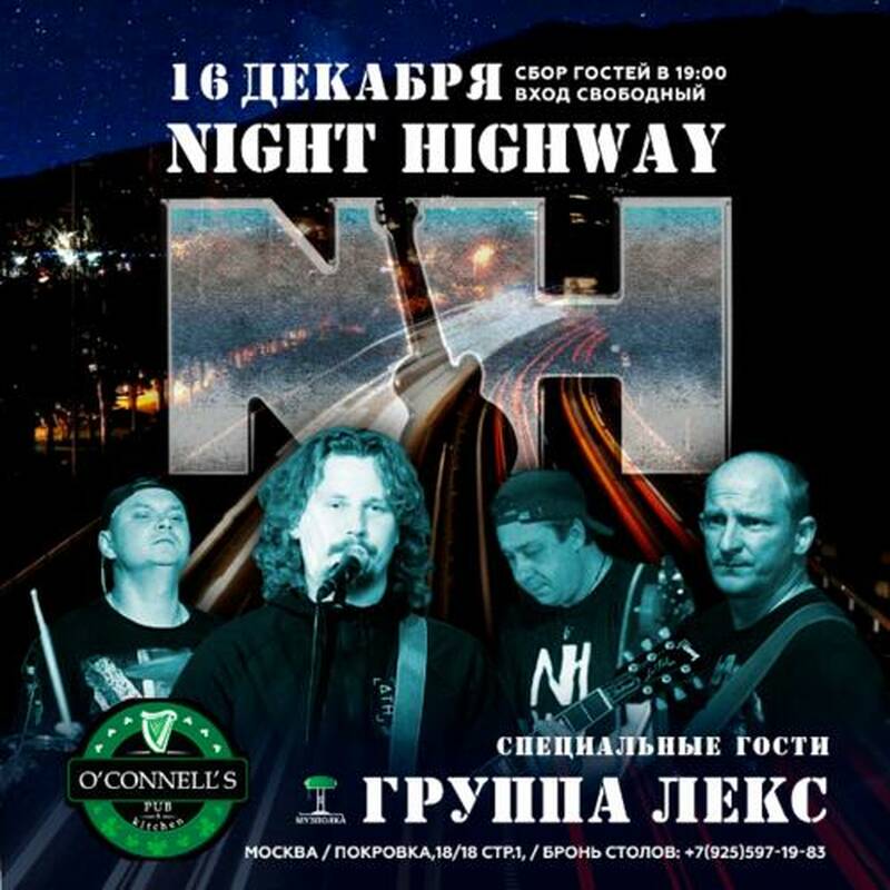 Night Highway — кавер группа, образованная в 2010 году и исполняющая хиты мирового Blues rock & Classic rock. Концертная программа коллектива разнообразна и никому не даст заскучать или взять в руки свой телефон, так как репертуар Chris Rea, Steavie Ray Vaughan, Dire Strates, ZZ Top, Joe Bonamassa, Robert Johnson, Jeff Healey band, Tina Turner, Alannah Myles, Status Quo, Gary Moore и др. никого не оставит равнодушным.