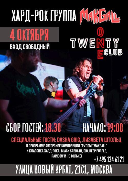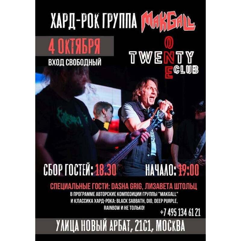 Сольный концерт хард-рок группы «MakGall» прогремит 4 октября в TwentyOneClub на Новом Арбате!