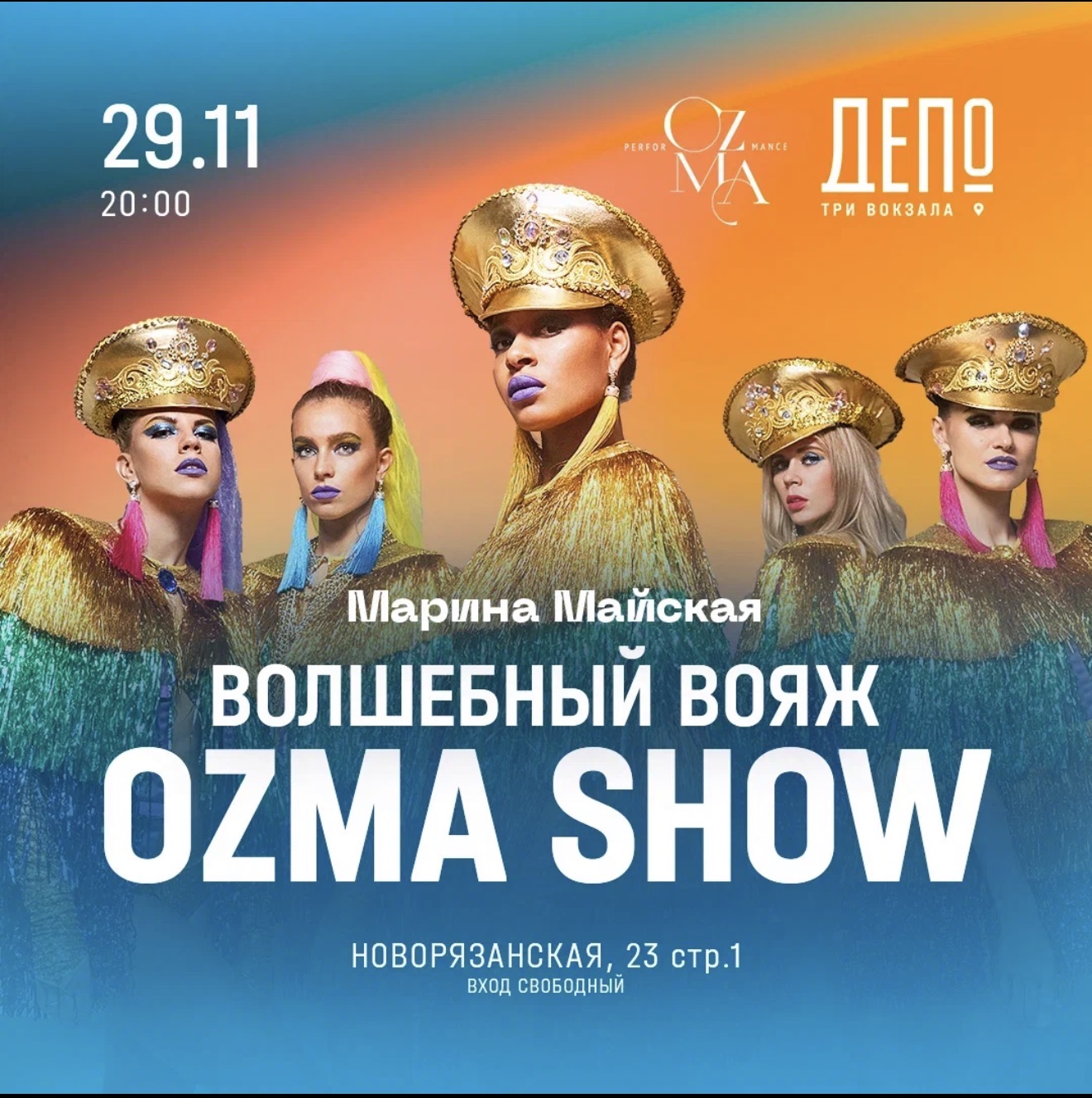 Насладитесь изяществом хореографии и завораживающей эстетикой движений в шоу Ozma performance show. Не пропустите ваш вылет и отправляйтесь в полёт фантазии в фудмолле «Три вокзала. Депо» 29 ноября!
