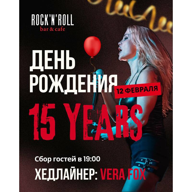 День рождения бара 12 февраля! 12 февраля нашему бару исполняется 15 лет — и мы собираемся как следует пошуметь. Хедлайнер вечера: Vera Fox — будет громко, горячо и по-настоящему рок-н-ролльно. Vera Fox — это совместный музыкальный проект Веры Fox (вокал/тексты) и Сергея Варламова (композитор/аранжировка/ сведение) За 12 лет музыкального сотрудничества Верой и Сергеем было создано много разнопланового музыкального материала. Наша музыка не имеет возрастного ограничения или конкретной жанровой принадлежности. Это песни для тех, кто слышит сердцем! Ваши любимые рок-каверы!