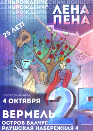 В этот раз есть повод для настоящего праздника — Лене четверть века, и в этот вечер Лена Пена будет петь для вас. И будет торт! А вишенкой на торте станут так полюбившиеся прекрасной публике приглашенные музыканты!