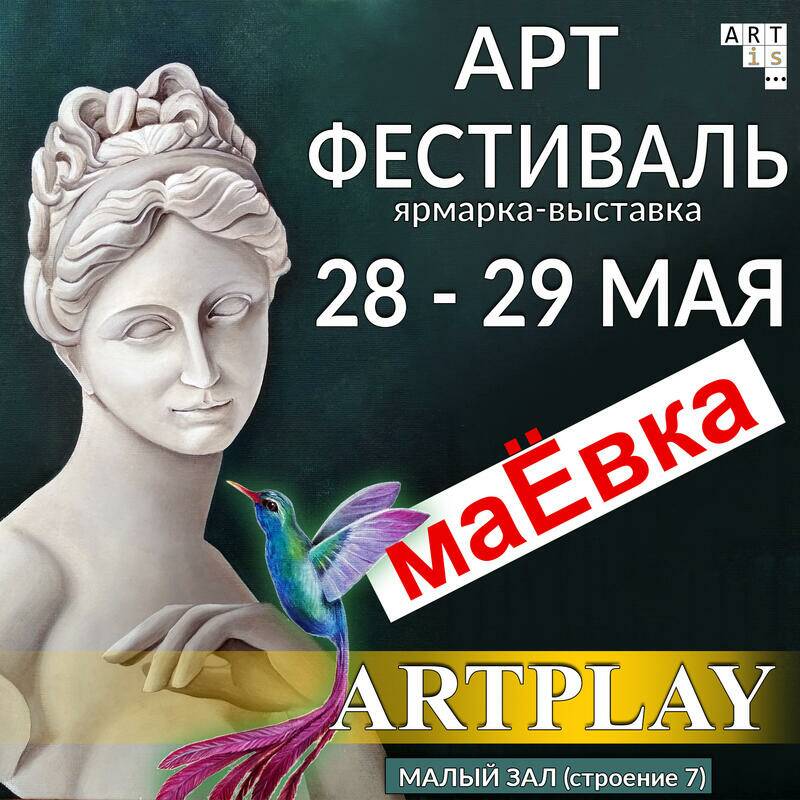 «маЁвка» 28-29 мая в малом зале центра-дизайна «Artplay», современное искусство и рукоделие. Арт фестиваль представит зрителю все самое радикальное и необычное — но вообще-то просто покажет различные направления, виды и техники в исполнении мастеров современного искусства.