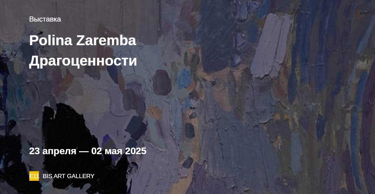 С 22 апреля по 2 мая в BIS ART GALLERY пройдет персональная выставка Полины Заремба «Драгоценности». Эта выставка погружает зрителя в метафорическую пещеру, полную драгоценных камней и воплощающую собой внутренний мир человека.