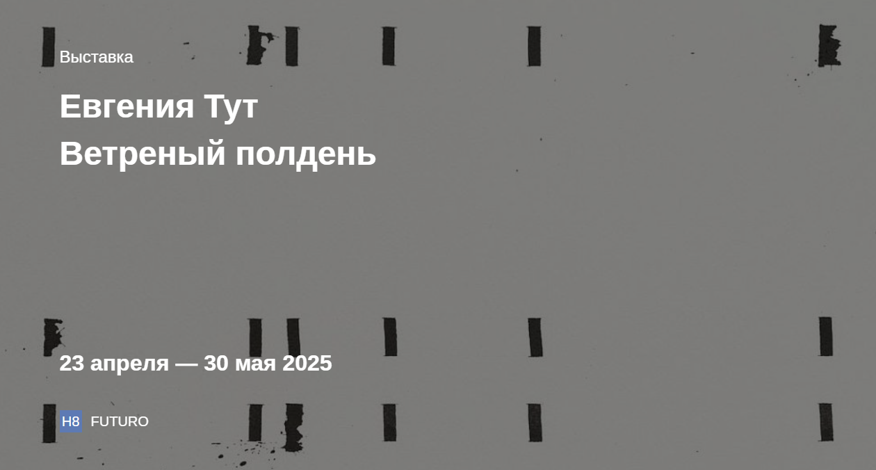 Галерея Futuro представляет персональную выставку междисциплинарной художницы Евгении Тут «Ветреный полдень», в которой она продолжает разрабатывать две основные темы своего интереса — письмо и архитектуру. На выставке представлены графические работы, образующие инсталляционный диалог с пространством галереи.