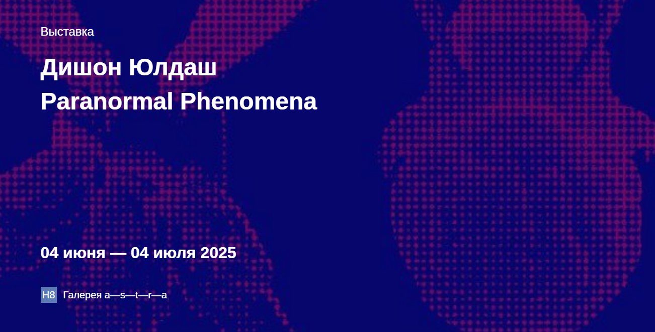Галерея современного искусства a—s—t—r—a представляет персональную выставку художницы Дишон Юлдаш PARANORMAL PHENOMENA. Проект отсылает к современному пространству городов Юго-Восточной Азии, где художница живет и работает последние годы, выстраивая критическое поле проекта вокруг вопросов контроля и подчинения.