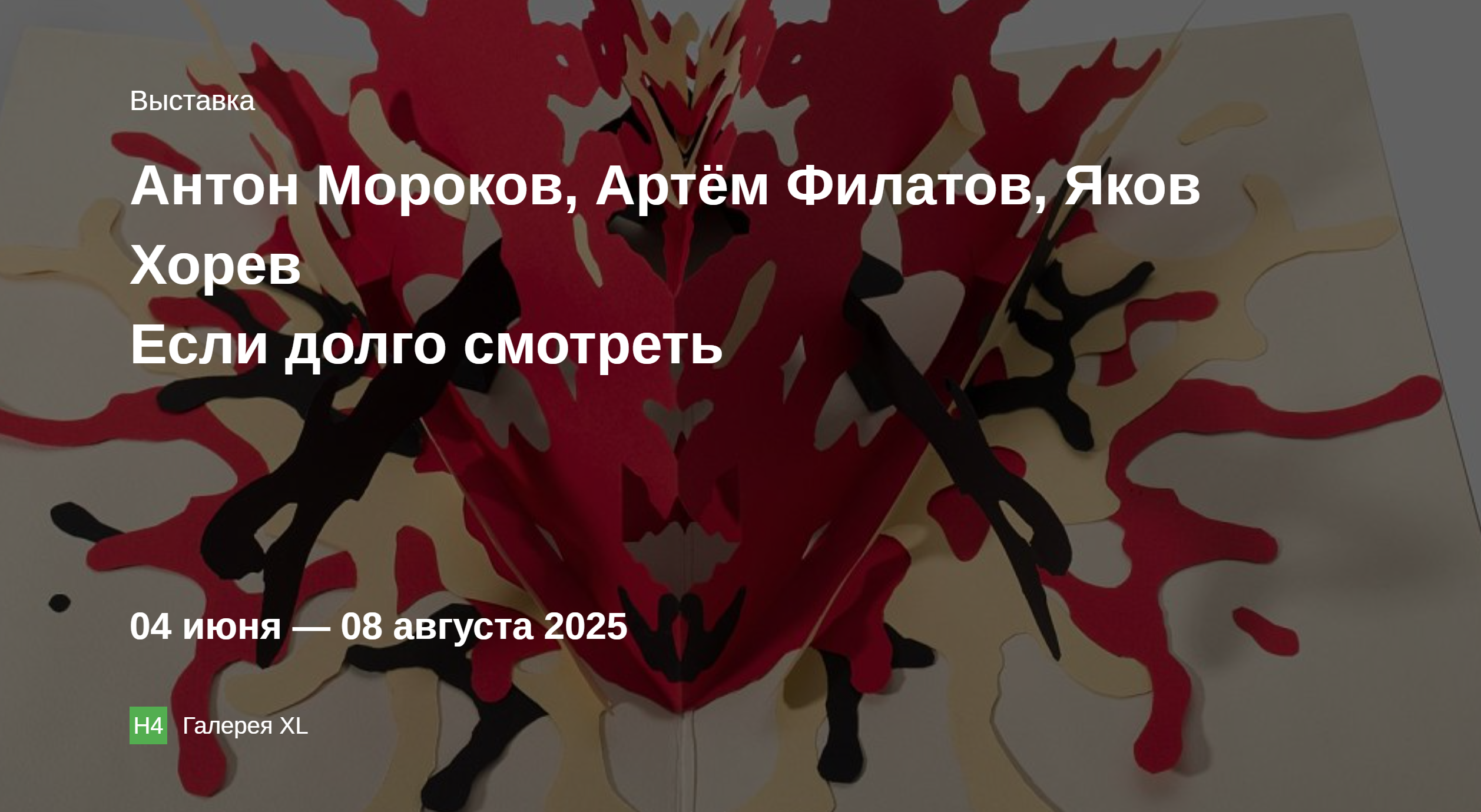 Галерея XL представляет выставочный проект Антона Морокова, Артёма Филатова и Якова Хорева «Если долго смотреть». Художники обратились к визуальности искусства — его видимым свойствам и невидимым качествам, аффектам зрительного опыта и следующих за ними критическим рефлексиям.