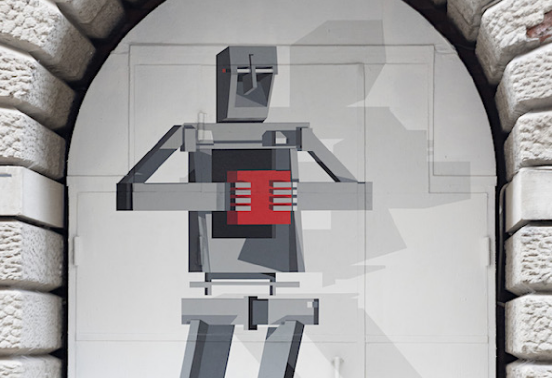 Базовая единица и центральный элемент каждого эскиза — красный куб в руках персонажа. Он обозначает и сердце, и любовь, и первоформу, из которой собран весь мир композиции. Послание универсально и легко считывается. Пространство арки усиливает этот эффект — фигура как будто входит или выходит из другого измерения, принося с собой «самое главное».