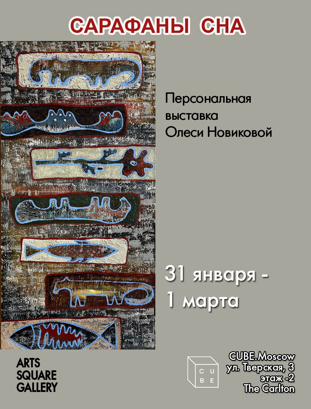 В своей серии работ «Сарафаны сна» Олеся Новикова исследует тему покрова, покрывала, но не как культурное явление, а как гармоничную часть детства и развития человека. В центре изучения — мамин или бабушкин платок, плед или покрывало, в которое ребенка укрывают перед сном. Это момент максимального ощущения любви и безопасности, необходимого для формирования личности с самого детства и креативного начала.