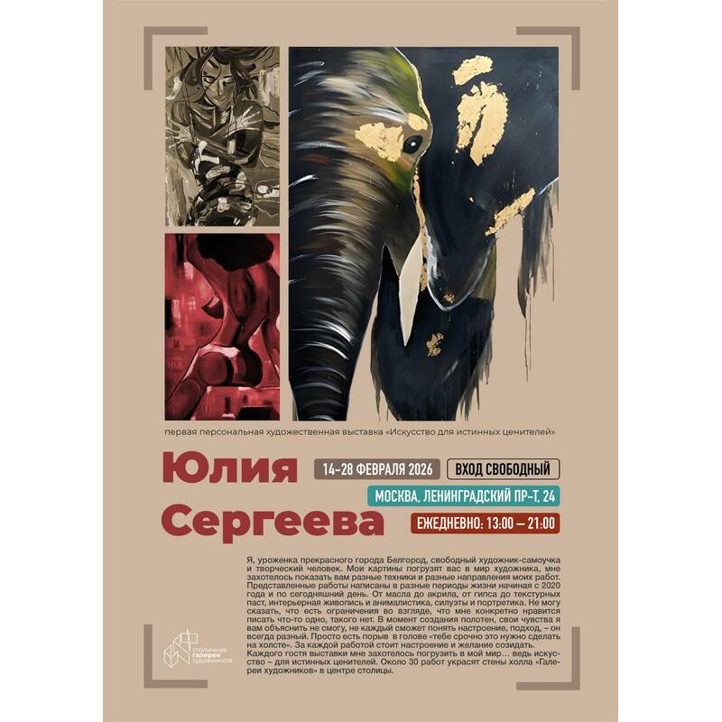 В Столичной галерее художников откроется персональная художественная выставка Юлии Сергеевой «Искусство для истинных ценителей».