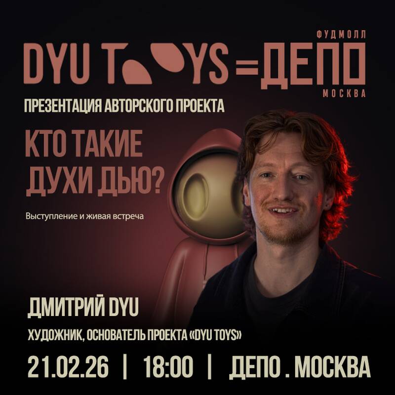 В рамках мероприятия художник представит нового духа, созданного в эксклюзивной коллаборации с ДЕПО. Встреча пройдёт в открытом диалоговом формате и позволит каждому участнику задать интересующие вопросы создателю лично.