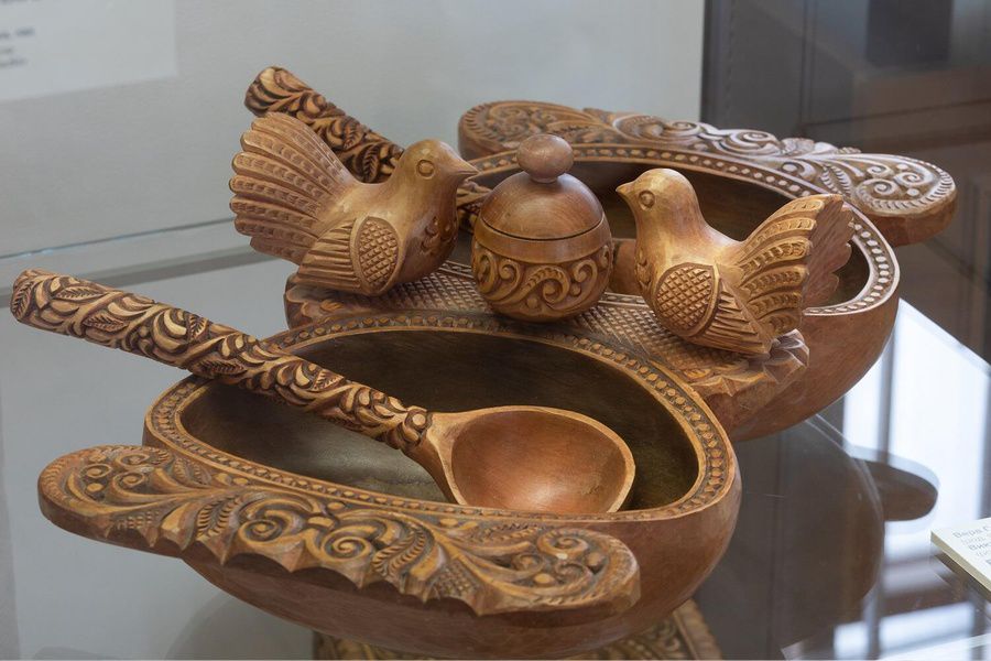Экспозиция посвящена абрамцево-кудринской резьбе — выразительному направлению русского декоративно-прикладного искусства. Этот промысел вырос на стыке художественного эксперимента, ремесленной школы и живой традиции, которую десятилетиями передавали мастера. Его узнаваемый язык складывался постепенно: в нём соединились пластика растительного орнамента, тонкость ручной работы и любовь к древесному материалу.