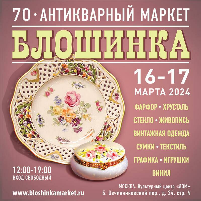Антикварный маркет будет работать с 12:00 до 19:00 в МДСТ-Культурном центре «ДОМ», расположенном по адресу: Москва, Б. Овчинниковский переулок, дом 24, строение 4, недалеко от станции метро «Новокузнецкая».
