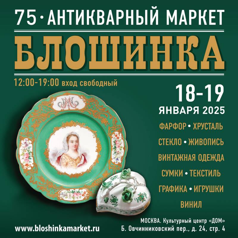 18–19 января 2025 года в Москве, в Замоскворечье, состоится 75-й Антикварный маркет «Блошинка». Это уникальное событие, которое уже 10 лет воссоздаёт традиции европейских блошиных рынков и предлагает почувствовать себя настоящим «охотником» за раритетами.