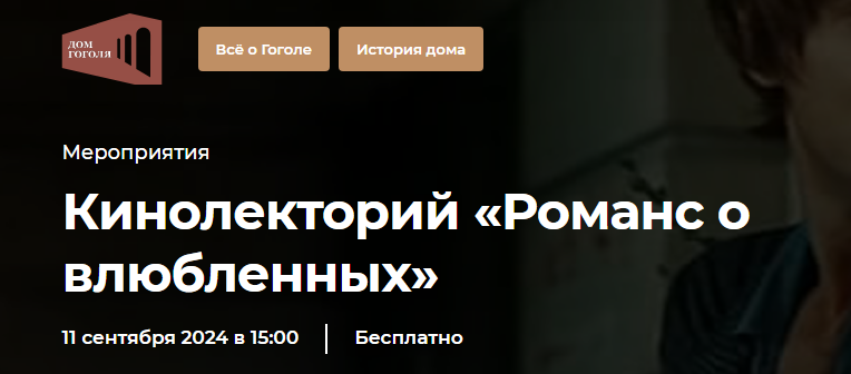 11 сентября, в рамках проекта «Киносреды в Доме Гоголя», состоится лекция, посвящённая фильму «Романс о влюбленных».