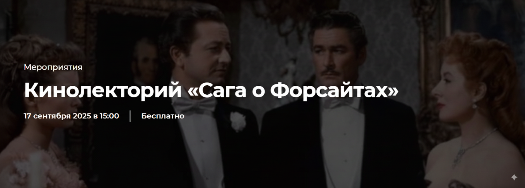 17 сентября в рамках проекта «Киносреды в Доме Гоголя», состоится лекция, посвящённая фильму «Сага о Форсайтах».