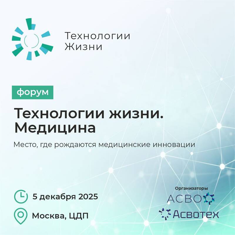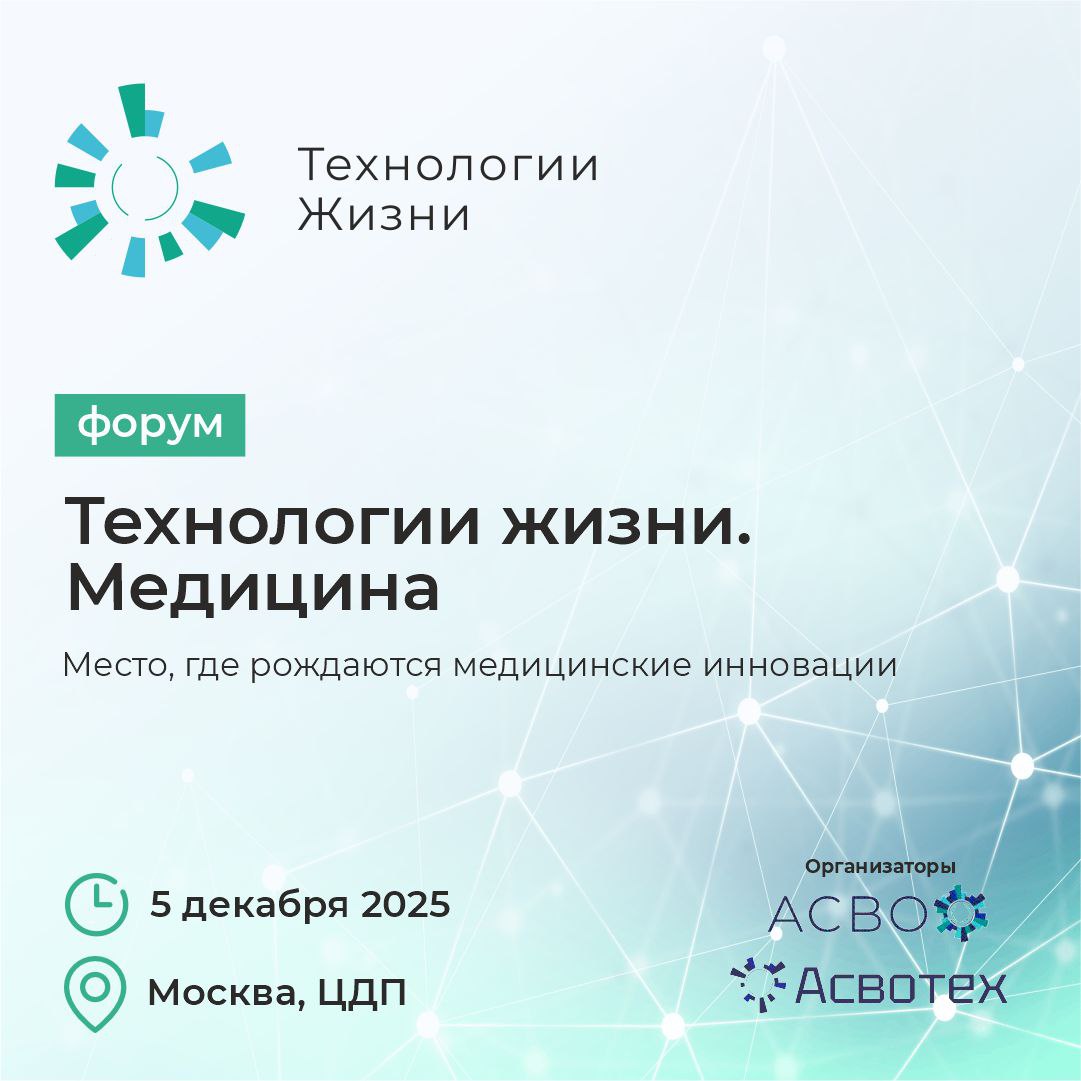 Приглашаем на Форум «Технологии жизни. Медицина», который пройдет 5 декабря 2025 года в московском Цифровом деловом пространстве. Форум организован Ассоциацией разработчиков медицинских технологий и оборудования (АСВО) и компанией «Асвотех».