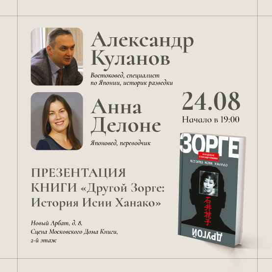 Востоковед, историк разведки Александр Куланов и переводчик с японского Анна Делоне расскажут о другом Зорге — пожалуй, самом знаменитом отечественном разведчике, советском Джеймсе Бонде, знаменитом и неизвестном одновременно. В центре их внимания — уникальные воспоминания японской жены Зорге, Исии Ханако, ранее на русском языке никогда не публиковавшиеся. Силой своей любви она сохранила память о Зорге и его прах.