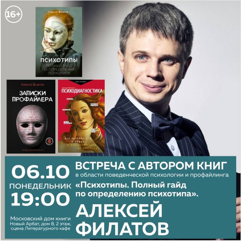 Автор представит свою книгу «Психотипы. Полный гайд по определению психотипа», в которой собраны наглядные инструкции и практические рекомендации, с которыми вы научитесь «считывать» поведение и характер людей, что повысит ваши шансы на успех в любой компании.