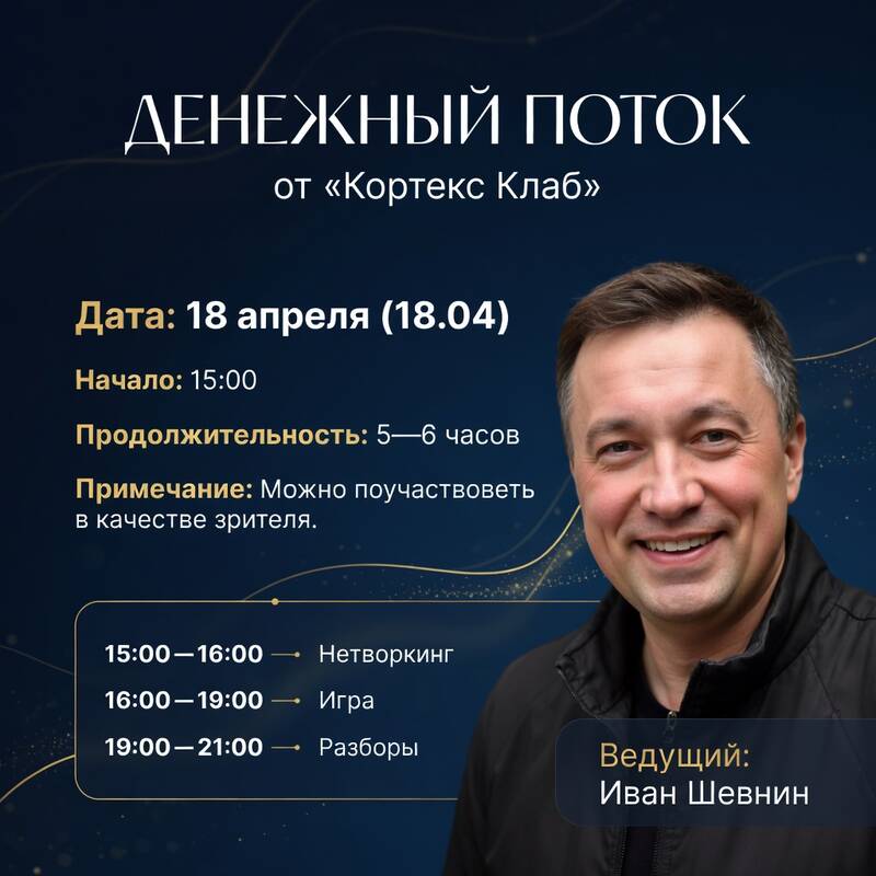 18 апреля (суббота) от Кортекс Клаб, ведущий Иван Шевнин