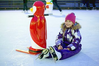 Вход на каток бесплатный. Можно прийти со своими коньками или взять их в прокат — есть как детские, так и взрослые коньки