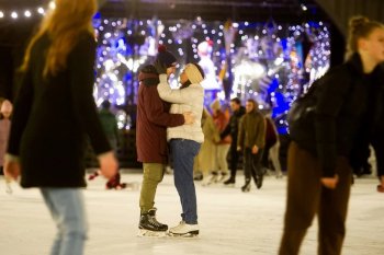 Каток на Площади Революции пользуется популярностью благодаря своему праздничному световому оформлению, удачному расположению и уникальной атмосфере.