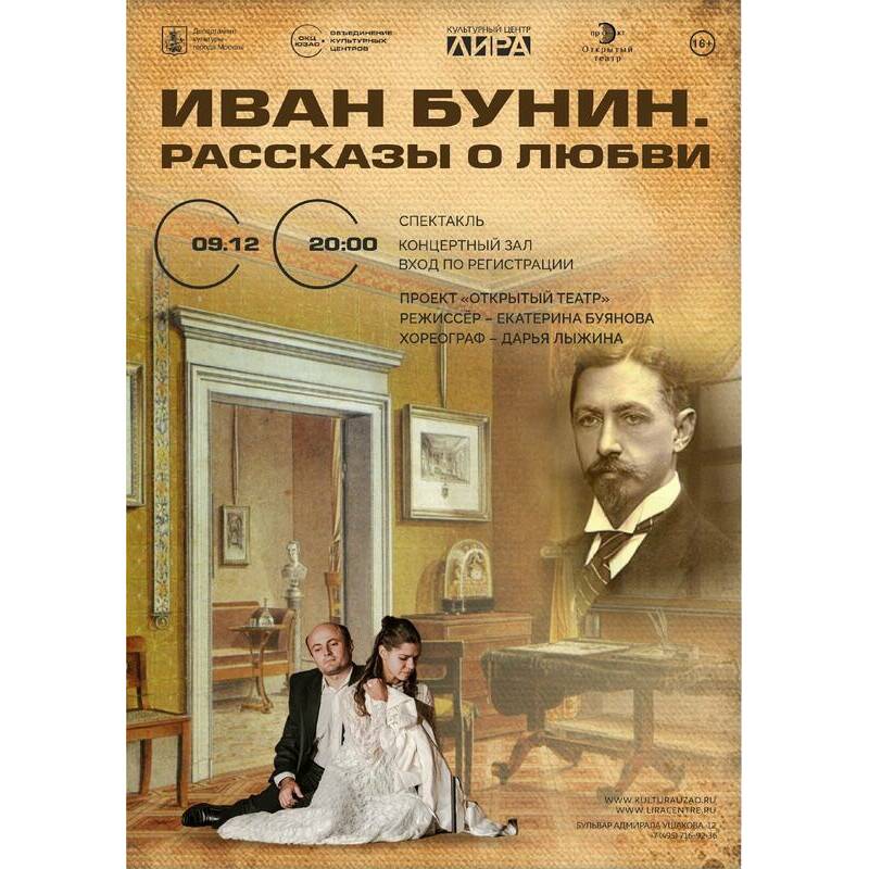 Великолепный стилист и чудесный рассказчик, мастер пейзажного описания — Иван Бунин, был также тонким знатоком человеческой души. Его произведения учат любить, видеть сердцем, чувствовать... Спектакль «Иван Бунин: Рассказы о любви» — попытка понять, насколько близок призрачный мир бунинских героев к нам сегодня.
