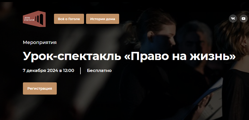 30 ноября и 7 декабря в театральной гостиной Дома Гоголя состоится показ урок-спектаклей «Право на жизнь» Московского педагогического театра подростков.