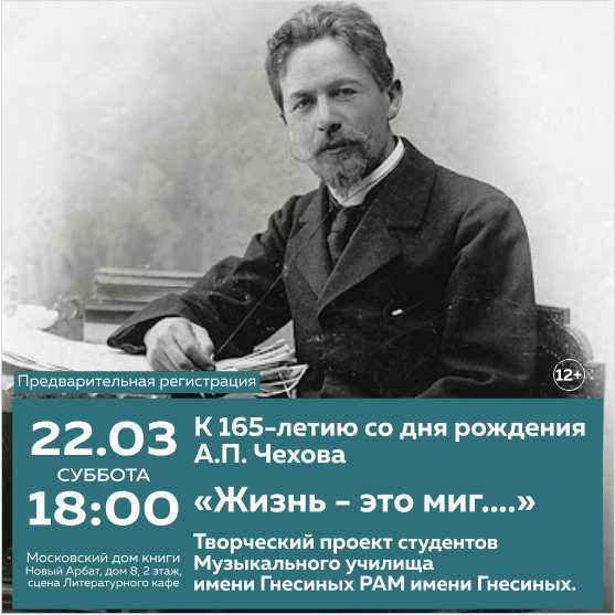 Гости Московского дома книги представят свою сценическую интерпретацию рассказов Чехова «Исповедь, или Оля, Женя, Зоя», «В вагоне», «Жалобная книга» и других.