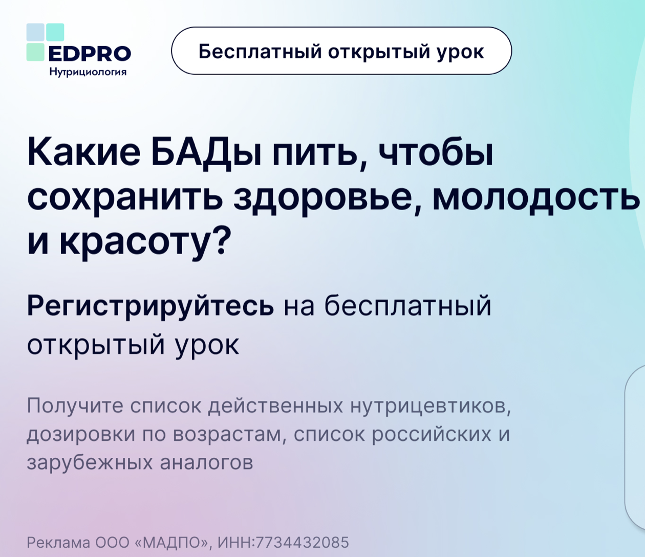 Вебинар «Нутрициевтики. Биодобавки для любого возраста — рабочие формы, зарубежные и российские аналоги»